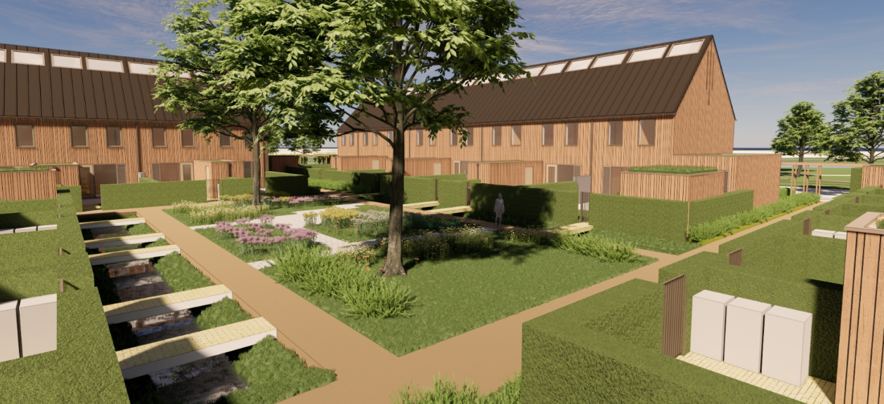 Duurzaam wonen in Het Poldergrid (De Tippe, Stadshagen). DeltaWonen bouwt hier 30 sociale eengezinswoningen. De bouw van de woningen start begin 2026.