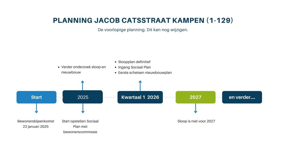 De uitkomst van het onderzoek en ons plan hebben we met de bewonerscommissie besproken. Deze commissie behartigt de belangen van alle bewoners aan de Jacob Catsstraat (1-129). In overleg met de bewonerscommissie stellen we een Sociaal Plan op. Het Sociaal Plan is een boekje met afspraken rondom de verhuizing. Het gaat dan niet alleen over rechten en plichten. Ook wat bewoners van ons kunnen verwachten, staat erin. Denk aan afspraken over de verhuiskostenvergoeding, een eventuele terugkeerregeling en extra inschrijfduur.