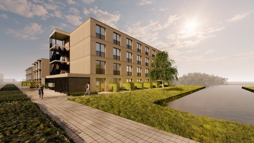 In mei 2024 zijn we gestart met het plaatsen van de eerste flexwoningen. De bouw van de appartementen en de ontmoetingsruimte is eind juni (2024) gestart. Alle woningen en de centraal gelegen ontmoetingsruimte zijn in 2024 opgeleverd en zijn verhuurd. In 2025 worden nog de laatste werkzaamheden voor de terreininrichting afgerond en wordt door de gemeente de brug aangelegd die de locatie verbind met het mooie groen aan de overkant van het water.