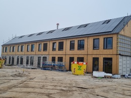 Let op: de volgende foto's zijn gemaakt tijdens de bouw. Ze zijn bedoeld om een indruk te geven van hoe de houten wanden en plafonds eruit zien in de woning. De woningen worden nog verder afgewerkt.