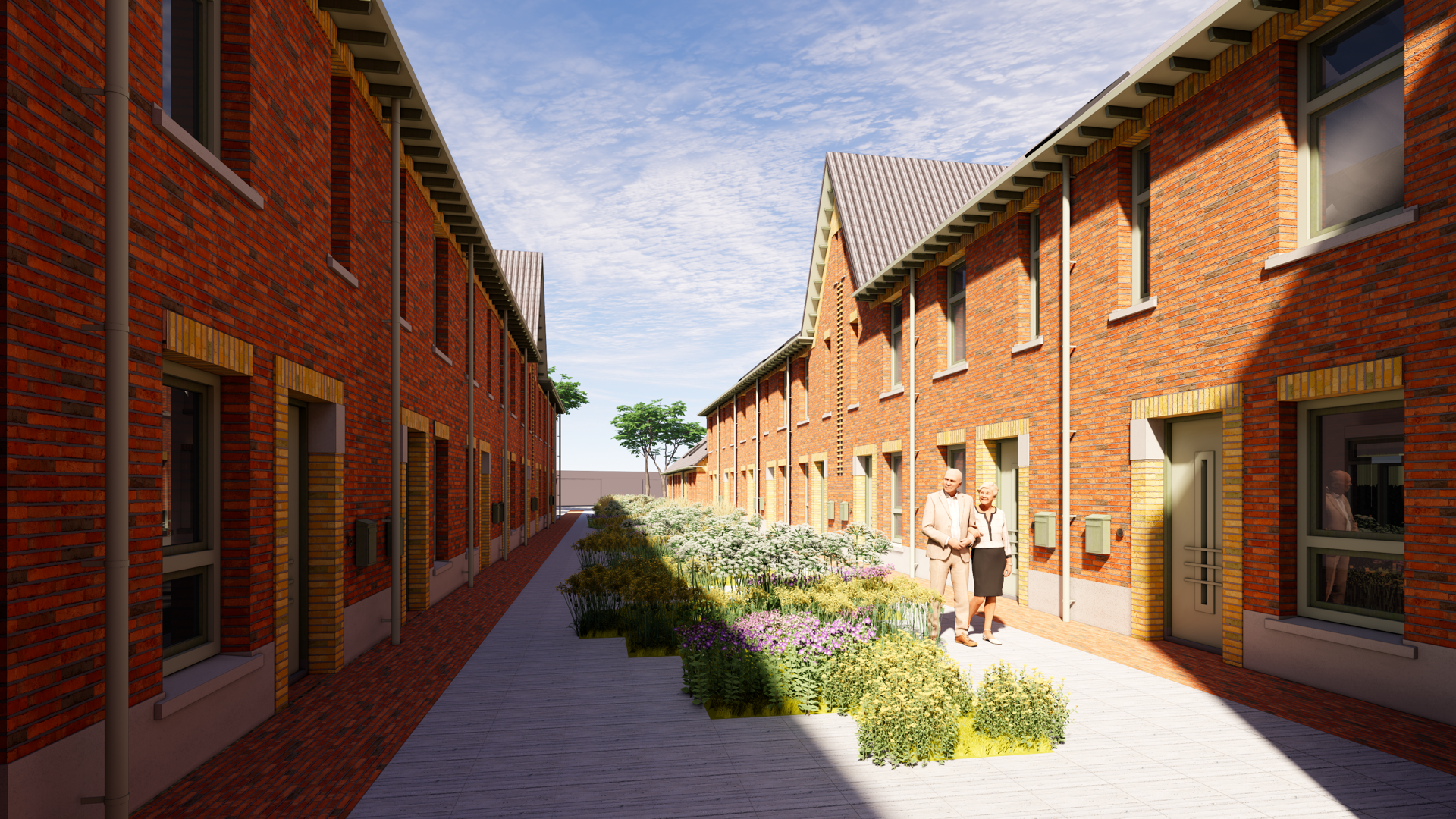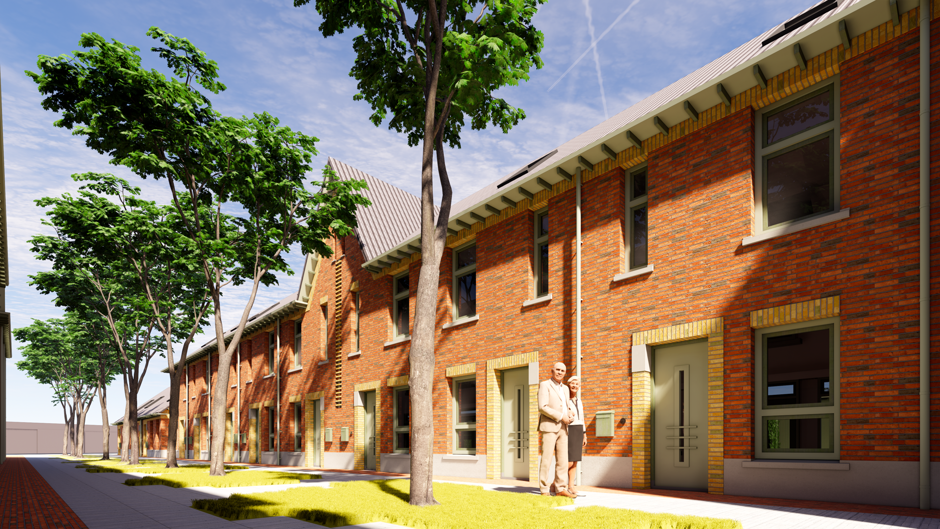 • 16 eengezinswoningen met een woonkamer en keuken op de begane grond, 2 slaapkamers en een badkamer op de verdieping en een zolder.