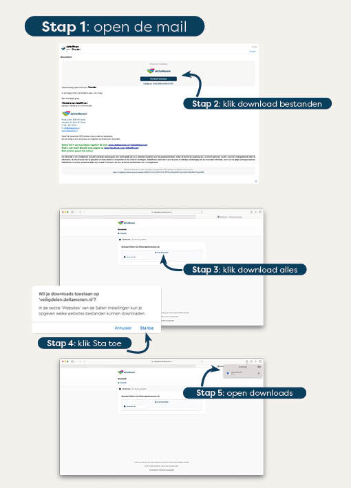 - U ziet het logo van deltaWonen en een blauwe knop waarop staat "Download bestand(en)".