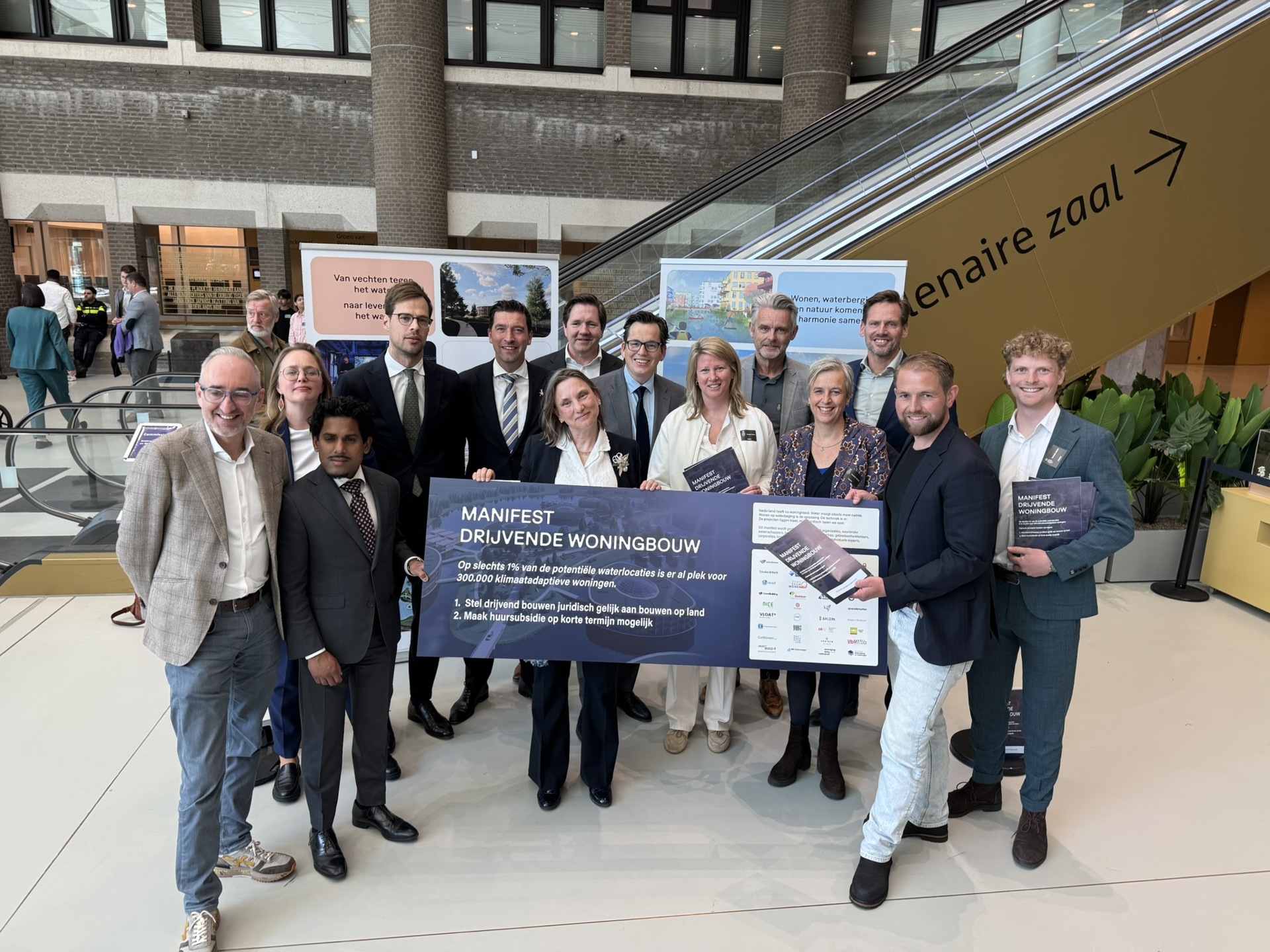Het manifest wordt gesteund door tientallen organisaties, waaronder woningcorporaties, waterschappen, gemeenten en bouwbedrijven. Zij vinden dat drijvende woningbouw nodig is om de woningnood aan te pakken én Nederland beter voor te bereiden op klimaatverandering.
