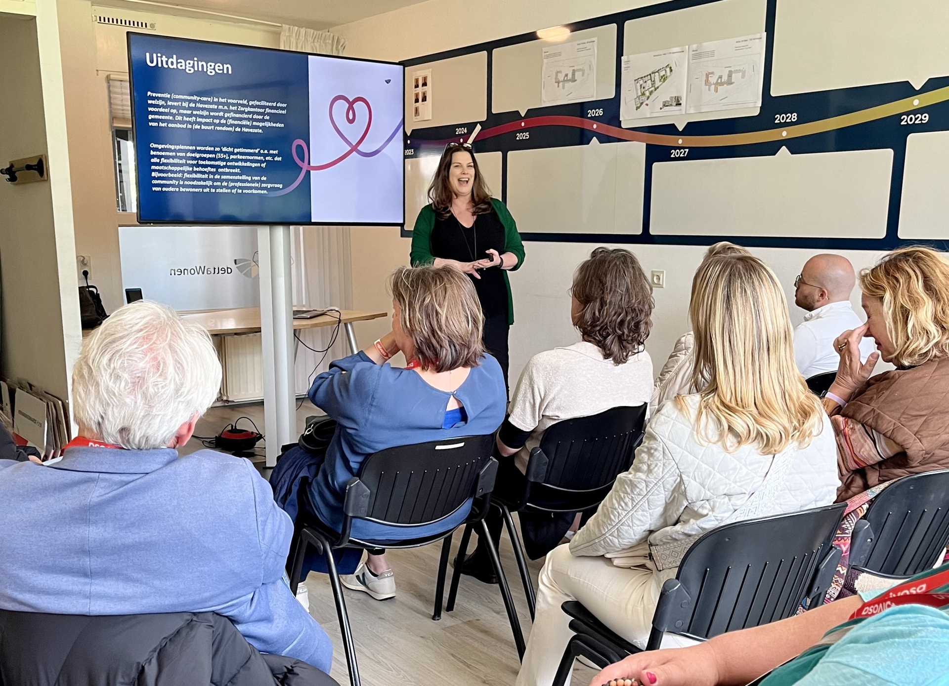 Van beelden over het sloop- en nieuwbouwproject naar de woonwensen en – behoeftes voor bewoners in de nieuwe Havezate. Hoe kijken we aan tegen inclusiviteit, betrokkenheid van omwonenden, de woon- en leefstijlbehoefte van onze bewoners? Thema’s die Petra vanuit de Wonen met Zorg visie helder toelichtte. De presentatie riep de nodige reacties op bij de aanwezigen. Sluiten de ideeën en wensen aan bij de realiteit als het gaat om betrokkenheid en verbinding met de omgeving?